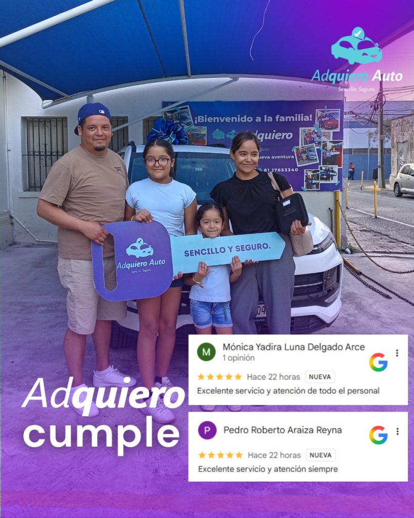 Somos una empresa sólida, fundada el 07 de abril del 2011, en la Cd. De Monterrey. Buscamos satisfacer una gran necesidad de la mayoría de la población para estrenar un AUTO NUEVO y CASA PROPIA, con planes accesibles, flexibles y que se adapten a todo presupuesto, nace Adquiero.